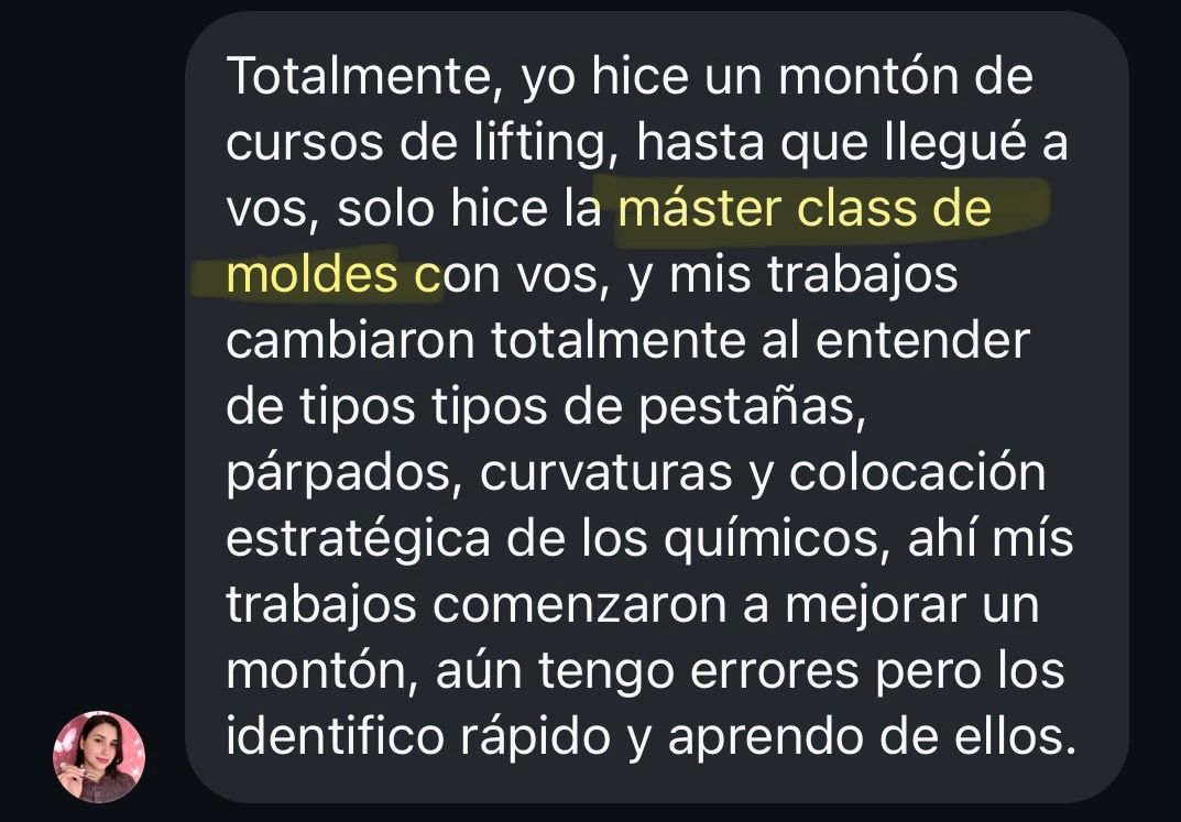 Aprenderás a reconocer las distintas curvas, elegir el molde ideal según cada tipo de ojo y dominar la colocación estratégica del químico para lograr resultados más prolijos, personalizados y saludables. Màs de 500 alumnas ya dejaron de dudar a la hora de elegir el molde.