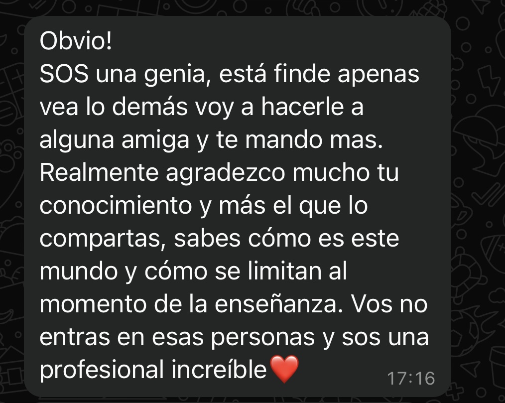 Si no estás segura de qué curso te conviene hacer, o te gustaría ver el temario detallado de los cursos, envíame un mensaje por Instagram para poder ayudarte mejor 🫶🏼
